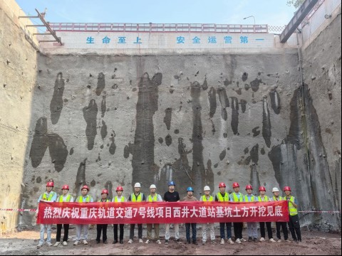 重慶軌道交通7號線一期工程線路全長27.822公里,起于科學城站,止于金鳳站,主要沿縱五線、飛雪路、永泰路、科學大道、高新大道、櫻桃路敷設,共設車站18座,換乘站7座,分別與規劃17號線、15號線、27號線、永川線、19號線及既有1號線換乘。西井大道站是重慶軌道交通7號線一期工程的第六座車站,位于西林大道路與永泰路交叉路口南側,沿永泰路呈南—北向設置。車站有效站臺寬14米,標準段寬,總長306.6米,為地下兩層島式站臺車站,采用明挖法施工。車站基坑深18.3至22.6米,圍護結構采用樁加錨桿及板肋式錨桿擋墻相結合的支護形式。該線路全線通車后,對提升西部槽谷軌道交通線網覆蓋率,支撐片區高質量發展具有重要意義。