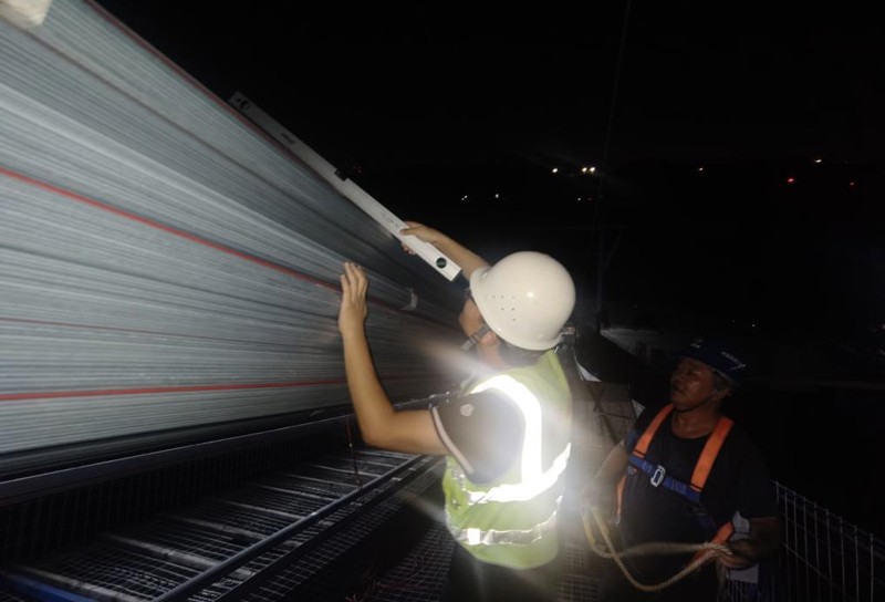 自2025年5月31日大橋基準索股牽引過江以來,建科人的身影無處不在。市建科院監(jiān)理團隊風(fēng)雨兼程、風(fēng)雨無阻、風(fēng)雨不懼,克服有風(fēng)有雨、高溫酷暑的施工環(huán)境,在長江江面百米的高空貓道上,頭頂烈日來回穿行、揮汗如淚。