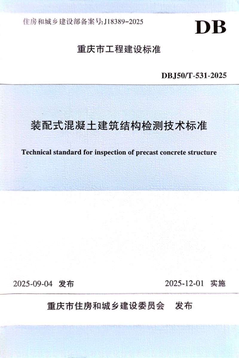 市建科院聯(lián)合重慶市住房和城鄉(xiāng)建設(shè)技術(shù)發(fā)展中心主編了《裝配式混凝土建筑結(jié)構(gòu)檢測技術(shù)標準》。